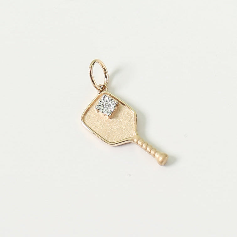 The Rally Charm is a refined tribute to movement, focus, and competitive grace. Crafted in luminous 14K yellow gold and accented with a delicate diamond, this charm reimagines pickleball through a lens of modern luxury — sculptural, polished, and intentionally understated.